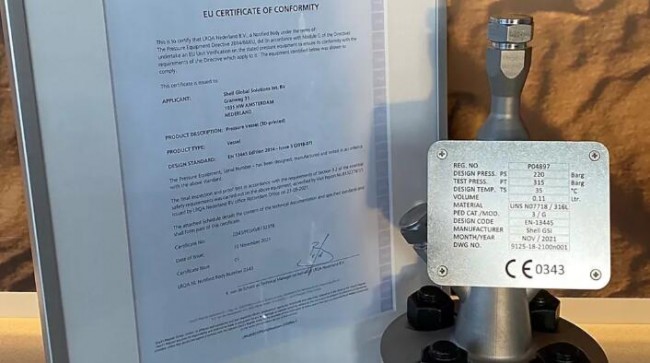 This represents an important milestone, not only for the additive manufacturing industry, but also for the pressure equipment community. This is the first CE marked pressure vessel approved by an independent Notified Body. The collaboration between Shell and LRQA is understood to be technically challenging but also highly rewarding. A pathway has now been established to certify additively manufactured pressure equipment according to PED.