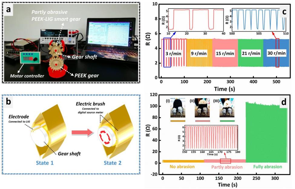 Figure 4 PEEK-LIG smart gear and its working status