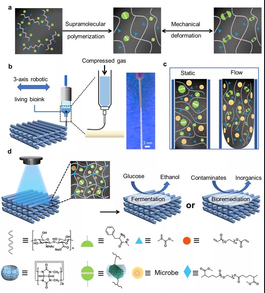 To generate the printable matrix, the research group developed a novel supramolecular hydrogel material composed of functionalized hyaluronic acid and cucurbituril as the host. Supramolecular hydrogel materials are not only suitable for microbial immobilization and growth, but also can be used as bioinks for 3D printing. “This type of hydrogel is very similar to the toothpaste in our daily life. The microorganisms stay in the special ‘toothpaste’, and the 3D printing equipment can extrude the ‘toothpaste’ to form a pre-designed structure, which is used to prepare cells with uniform distribution and Positionable 3D structures with high maintenance and strain immobilization.” The study showed that microorganisms in 3D lattices can maintain high cell viability and metabolic activity during fermentation and bioremediation.