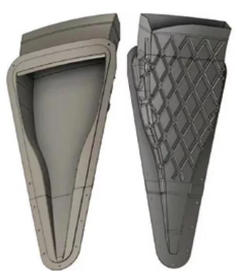 Each engine of the XB-1 is fitted with a variable bypass valve (VBV) system. This system can bleed compressor air to prevent engine stalling. The left is the digital model from the Flow preprocessing software; the middle is the three printed parts; the right is the window blade.