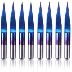 SainSmart Genmitsu 10Pcs Nano Blue Coat Engraving Bits, 15 Degree 0.1mm Tip 1/8″ Shank Conical V-Bit