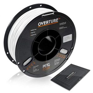 OVERTURE PETG White Filament 1.75mm with 3D Build Surface 200 x 200 mm 3D Printer Consumables, 1kg Spool (2.2lbs), Dimensional Accuracy +/- 0.05 mm, Fit Most FDM Printer, White