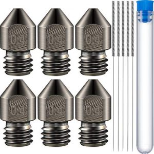 【Value for money】:Package includes 10 x 0.4mm 3D printer hardened stainless steel nozzles,so you will have enough nozzle for replacement, and 3 x nozzle cleaning needles, which has strong flexibility and durability, easy to bend the needle into a nozzle without breaking, good tools for nozzle clogging clean.