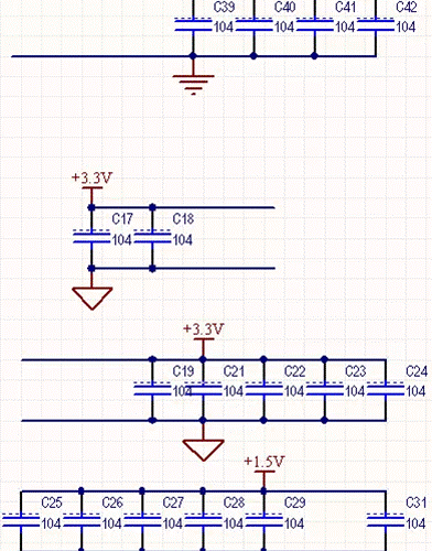 From Figure 1-1, we can see that there are three power supplies: +5V, +3.3V, and +1.5V. Each power supply has a 0.1µF bypass capacitor to bypass high-frequency crosstalk in the power supply to the ground to prevent high Frequency signals are crosstalked to other modules through the power supply. At the same time, the power frequency interference of the power supply itself can be filtered out.