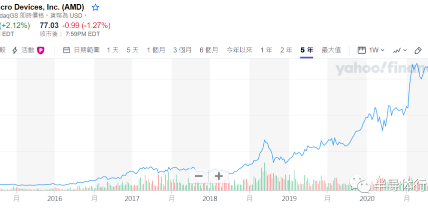 The biggest increase was undoubtedly AMD. In October 2015, AMD struggled to maintain the level of US$2 per share. At that time, with the decline of the personal computer business, it seemed to have no reason to exist. But after a long period of operational struggle, AMD finally got out of the predicament in terms of economic value creation under the leadership of its outstanding leadership team. Today, AMD’s stock price has soared all the way to around $85. AMD’s stock price has doubled 40 times in the past five years, an increase of 4150%.