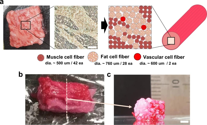 In the paper, the researchers showed that three types of bovine cell fibers (muscle, fat and