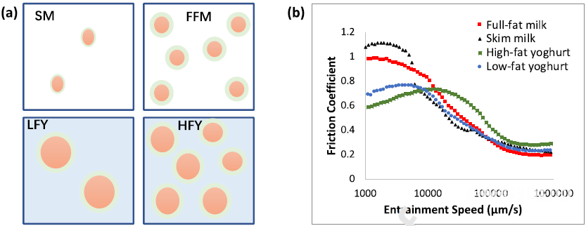 Studies have found that the friction coefficient of food emulsions increases as the height of the rectangular micro-scale pillars representing papillary protrusions on the surface of the soft substrate decreases or the density increases. It is worth noting that the decrease in the elastic modulus of the matrix leads to an increase in the coefficient of friction of the milk sample, while the coefficient of friction of the yogurt sample decreases. The change of substrate thickness has little effect on the friction coefficient of food emulsion.