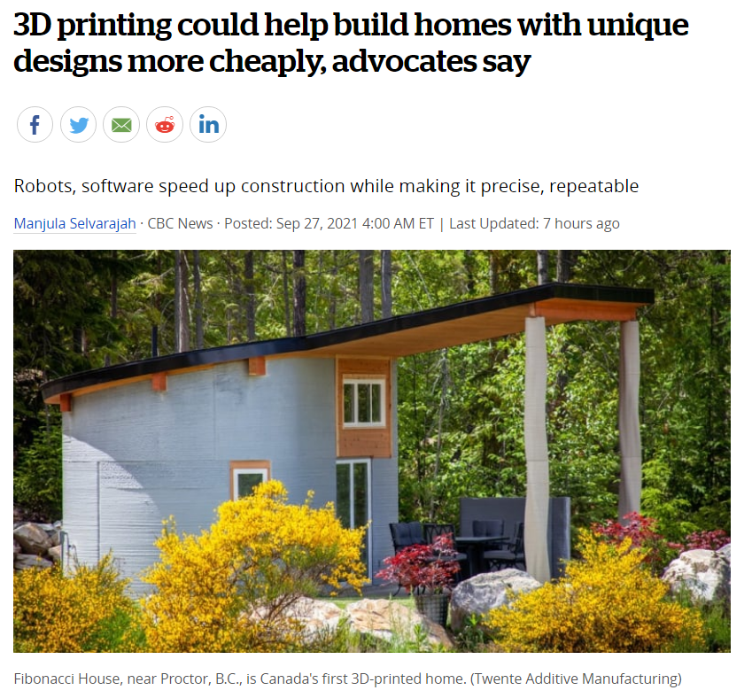 This community may one day become a proof of concept for using 3D printing technology to build affordable housing elsewhere in Canada, as more and more people cannot afford housing.