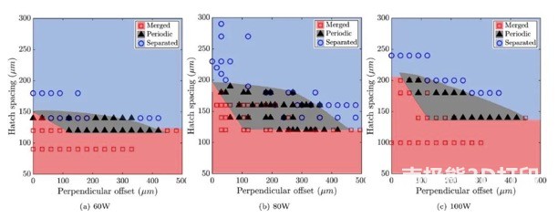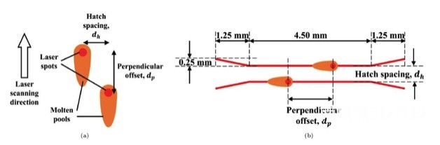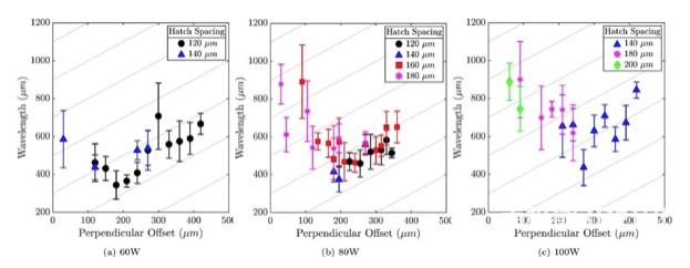 The researchers introduced two parameters: scanning distance and vertical offset, as two identical lasers for powder bed printing. The researchers found a significant difference between the two completely merged and completely separated phases. This transitional phase produces a periodic structure that will be very difficult to manufacture with a single laser using traditional powder bed technology. For a specific laser power, the occurrence of a periodic structure makes a specific occurrence defined as the scan pitch and vertical offset. Generally speaking, in order to obtain a periodic structure, it is necessary to satisfy both the scanning pitch and the vertical offset and to have a higher laser power.