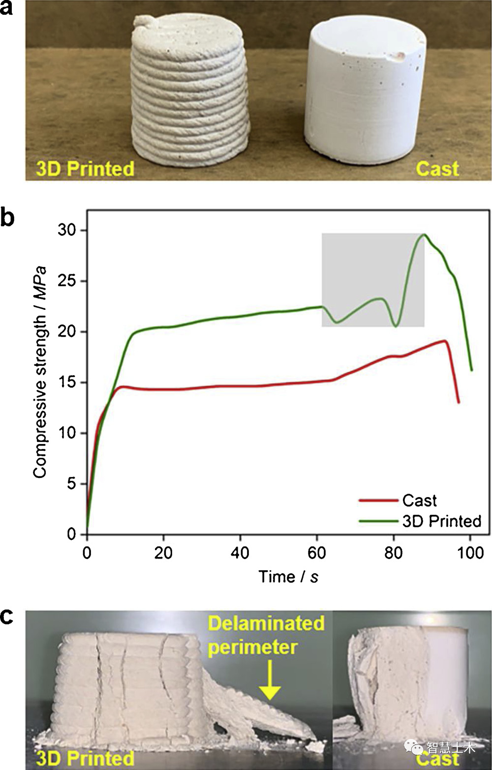 In this paper, microscopic test methods such as XRD, SEM, TGA, etc., combined with macroscopic mechanical and rheological measurements, were used to compare the mechanical properties, rheological properties and constructability of printed and poured RMC slurries. The results of the study show that by adding appropriate admixtures and only 3 wt.% corrosive magnesia to commercially available RMC, the proper rheology and buildability of RMC slurries are achieved, enabling 3D printing of complex structures to maintain Precise shape.