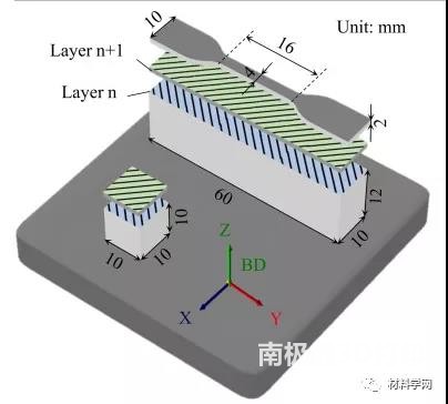 Figure 3 Schematic diagram of the sampling and scanning strategy in the L-PBF process, the coordinate system shows the construction direction. BD refers toarchitecturedirection.