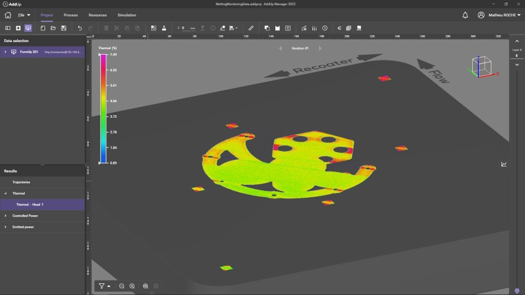 △Meltpool monitoring data can be visualized in real time through AddUp Manager, source: AddUp.