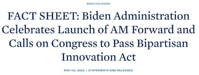AM Forward (Additive Manufacturing Forward) affirms that the Biden administration’s top economic priority is to fight inflation by reducing costs facing working families and reducing the federal deficit.