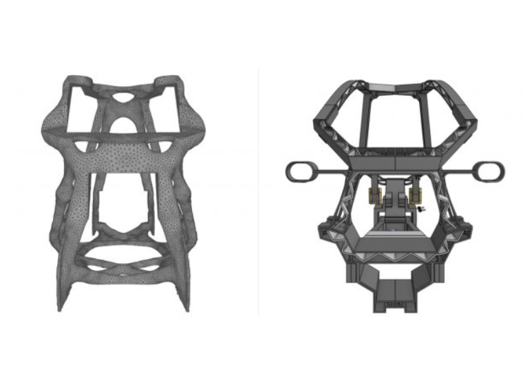 Chameleon3D printingThe plastic chassis is optimized with Ranfinex’s random software. The software will test random changes in load conditions before providing the final optimized structural design.