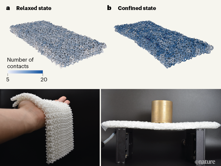 When in its natural state, this fabric is easy to bend and can hang on the surface of complex objects. When in a compressed state, the interlocking particles of the fabric will be squeezed together, and the hardness is about 25 times that in the loose state. The maximum load capacity of the resulting structure is more than 30 times its own weight.Researchers believe that future reconfigurable fabrics need to fit the human body or be able to be fixed after forming a complex structure.3D printingThe new characteristics of “soft hedgehog” heralds the bright future of wearable reconfigurable structures.