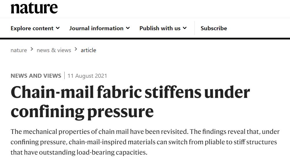 In martial arts novels, the “soft hedgehog armor” is made of a mixture of gold silk and thousand-year-old rattan branches. The latest study of materials science published in the British “Nature” magazine on the 11th described a kind of high-tech fabric imitating “chain armor” (chain armor) developed by scientists, which can be changed from a soft and bendable state. Become a hard state, achieve a strong load, and then be able to change back from the hard state.This material will be used for various robots and