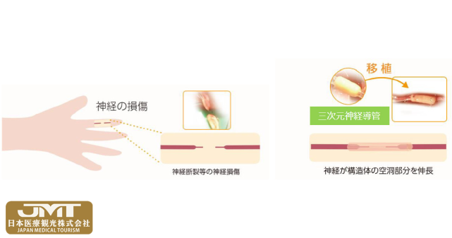 The use of artificial nerves to treat peripheral nerve damage is being studied. However, artificial nerves are said to lack cellular components and lack environmental factors such as cytokines necessary to guide regenerated axons, so that good results are not obtained compared with autologous nerve transplantation.