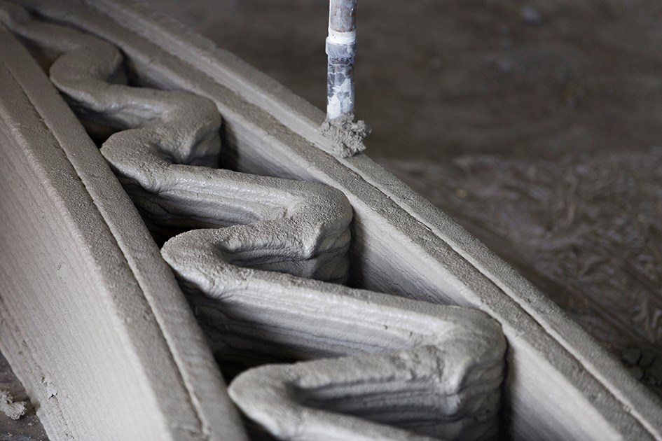The company uses a technology called “Printfrastructure” to build concrete slabs on site, instead of transporting materials there before starting construction like the traditional model.