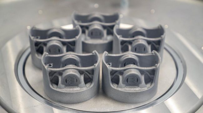 in progress3D printingDuring the piston design, the development team used topology optimization software to identify areas of high force so that the correct amount of material could be used in each area. The circular hole in the piston has a temporary support structure that prevents sagging and deformation as the alloy heats up due to the heat of the laser. These support structures are formed inside the piston like honeycombs, like piston pinholes, and are post-processed by machining anyway.
