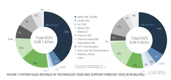 ▲ Different types of metal 3D printing technology market share (2020, 2025 – forecast)