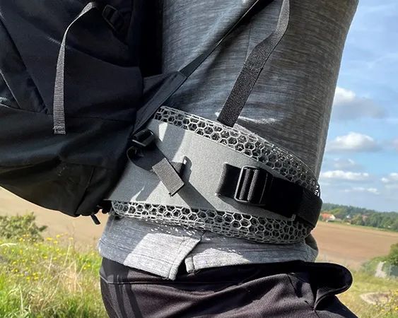 use3D printingThe lattice structure replaces the foam traditionally used in backpack waistbands and back pads. This structure features a fully integrated cushioning system for great comfort: the smart lattice geometry allows for flexible adjustment of its cushioning performance by precisely calibrating changes in strut thickness and overall dimensions of the lattice elements.