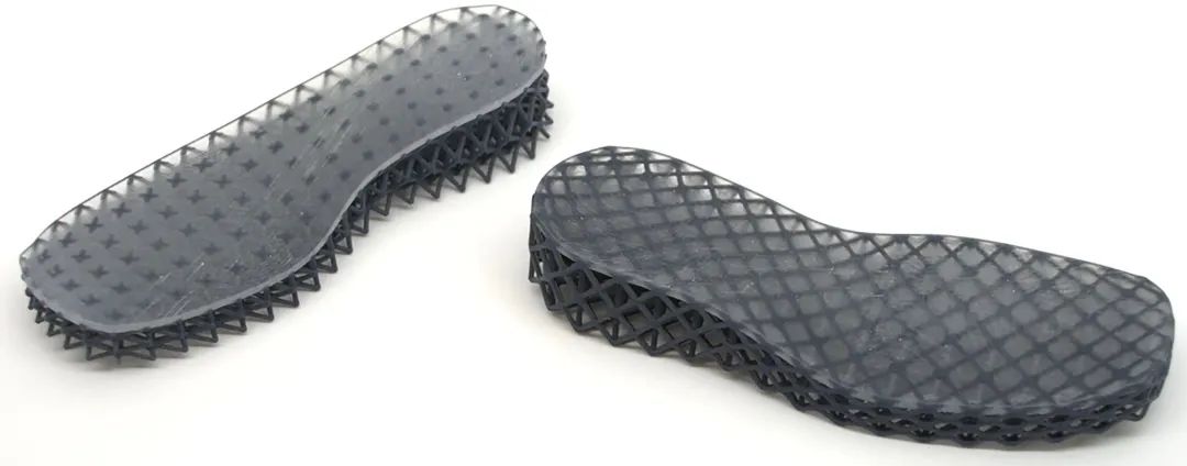 DManD researchers used a custom design, analysis, and slicer to create a multi-material soft lattice structure for the shoe prototype, which is used to control material stiffness and behavior in space.