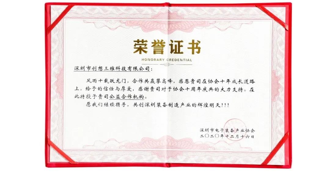 On December 16, 2020, the “Socialist Advanced Demonstration Zone Equipment Industry Technology Innovation Contribution Award Ceremony, the 10th Anniversary Celebration of the Founding of Shenzhen Electronic Equipment Industry Association and the 2021 Wisdom Night Welcome Spring Festival Gala” hosted by Shenzhen Electronic Equipment Industry Association Held in Shenzhen International Convention and Exhibition Center.Creative 3D as3D printingThe industry evangelist stood out from more than 300 outstanding companies and won the “Science and Technology Innovation Contribution Award.”