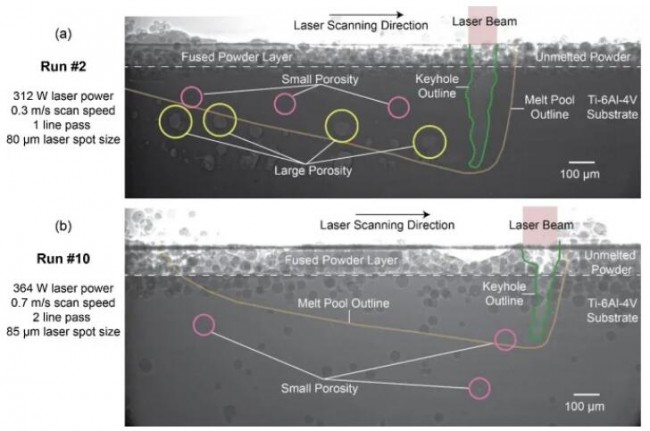 In contrast to existing methods, the researchers here studied the relationship between the formation of underground pores called keyhole porosity and the thermal history of the material points throughout the L-PBF process. When the energy density in the molten pool is excessive, usually due to high laser power and low scanning speed, the resulting molten pool becomes deeper and there is a recessed area of vaporized material, and the process enters the keyhole mode. The porosity of the keyhole is caused by the instability of the keyhole or recessed area. Researchers believe that the characteristics of thermal history (such as maximum emissivity and cooling rate over time) are related to the dynamics of the molten pool. To study these phenomena, the study used custom-made equipment in which a programmable laser scans on the powder bed. A fixed infrared (IR) camera is used to measure the thermal characteristics of the surface (in the form of black body radiation), while simultaneously observing the dynamics of the molten pool and pore formation through synchrotron-based high-speed X-ray imaging. After obtaining a data set of thermal history and related porosity levels for processing conditional distributions, genetic algorithms (GA) are used to select key features to calibrate various machine learning (ML) techniques. The result is a predictive model that gives the thermal history of previously uncharacterized processing conditions measured by IR, thereby creating the possibility of porosity. Although thermal history alone may not be sufficient to predict porosity, it is expected to become a tool that has nothing to do with machine settings and processing paths of complex parts. This is an important criterion, because a model that only relies on laser parameters (such as power, scanning speed, and spot size) and simple construction parameters will not be able to solve the complex distribution of heat accumulation in actual parts. This work provides a tool for real-time control of L-PBF, the purpose of which is to produce parts with lower defect levels.