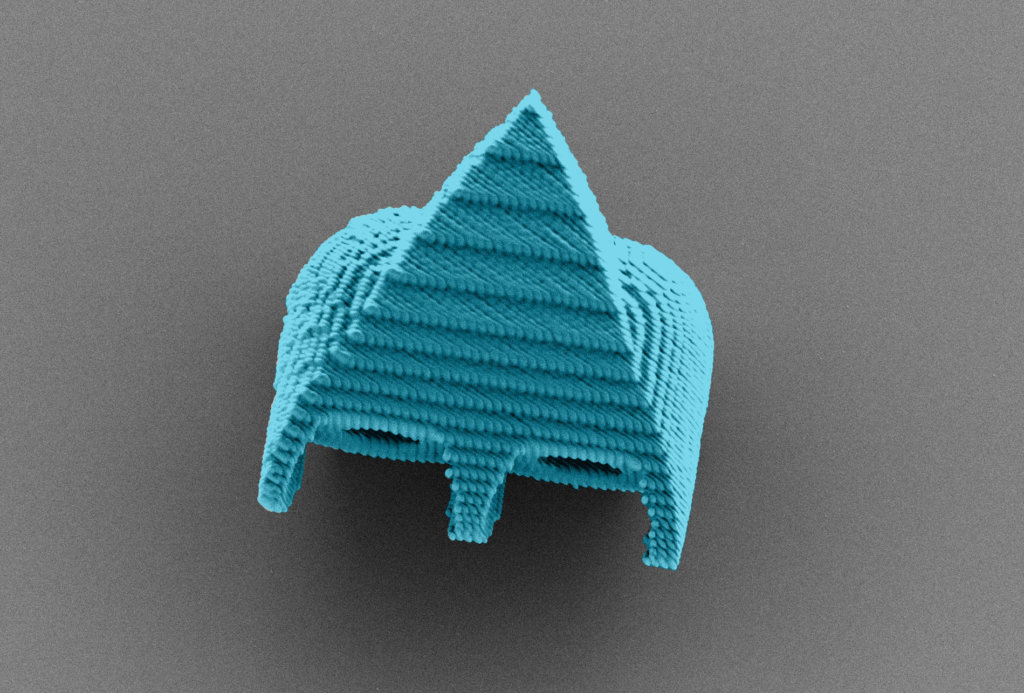 △A cell-sized swimming robot under a scanning electron microscope can be driven and guided by ultrasound.Image source: Cornell University