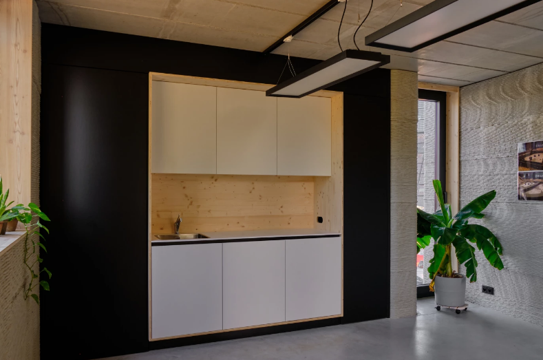 3D printingThe house includes a simple kitchenette (Image © Kamp C / Jasmien Smets)