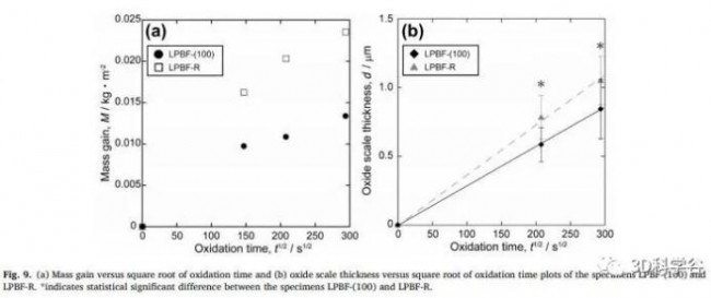 (A) The relationship between the quality of LPBF-(100) and LPBF-R and the square root of oxidation time;