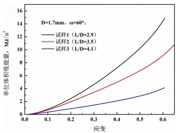 Figure 5 The influence of the aspect ratio on the energy absorption curve per unit volume when the included angle is 60°