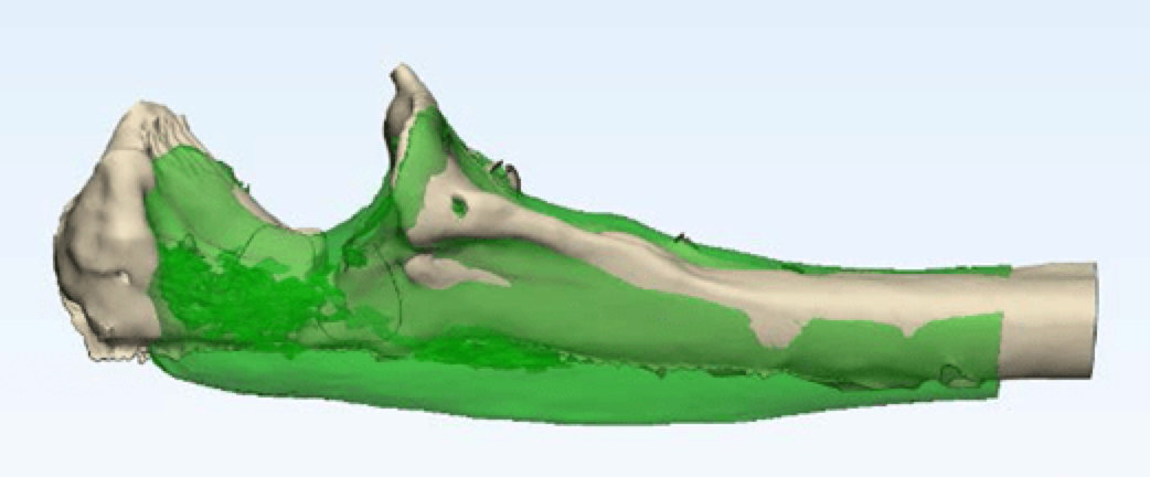 In this theoretical case, a patient with an osseointegration plate noticed problems moving the elbow. Doctors perform CT scans of the affected limbs so that 3D images can be used to examine why the elbows are not bending properly.