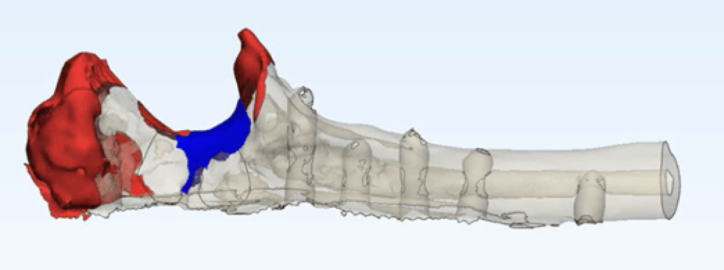 To ensure that the optimal solution was found, the doctor also performed a CT scan of the healthy limb, mirror-inverted the image, and then superimposed the two image results. In this way, the elbow of the affected limb can be compared with the healthy limb.