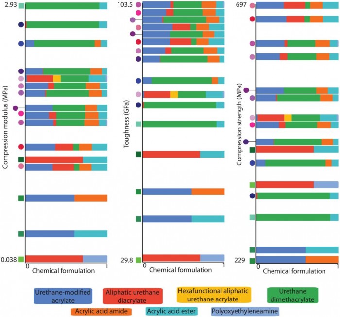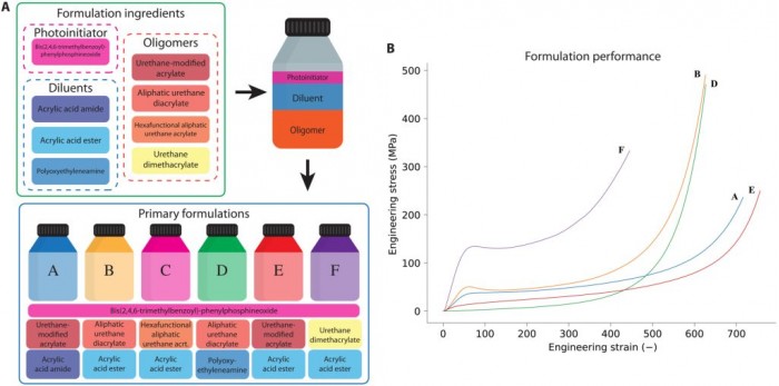 Researchers use the system to optimize a new3D printingThe ink formula to test the system, this ink will harden under ultraviolet light. They identified six chemicals used in the formulation and set the goal of the algorithm to find the material that performed best in terms of toughness, compressive modulus (hardness), and strength.