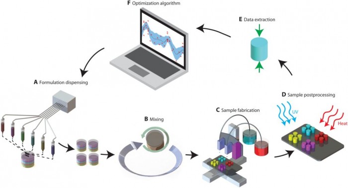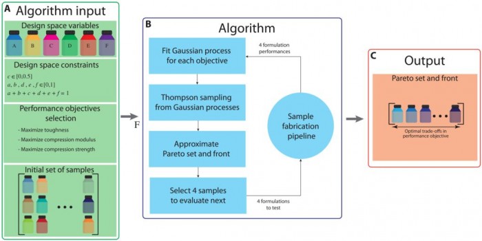 In the system developed by the researchers, an optimization algorithm completes most of the trial and error discovery process. The material developer selects some ingredients, inputs the details of their chemical composition into the algorithm, and defines the mechanical properties that the new material should have. Then, the algorithm increases and decreases the number of these ingredients (like turning a knob on an amplifier), and checks how each formula affects the properties of the material, and then arrives at the ideal combination.