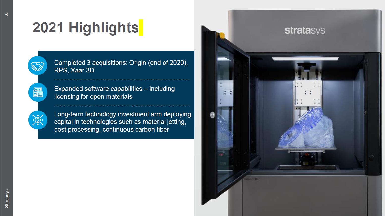 Dr Zeif continued: “In 2021, we built the necessary infrastructure to drive our company’s success in the years ahead through key acquisitions (Origin, RPS, Xaar 3D) and successful product launches. Vibrate and expand our entire polymer portfolio3D printingCombined, we strengthen our industry leadership. Many industries continue to embrace the benefits of additive manufacturing and incorporate it into large-scale component production, and Stratasys is at the forefront of this ongoing change.We have best-in-class products, an unparalleled sales network and support infrastructure, a strong balance sheet and the best 3D printing