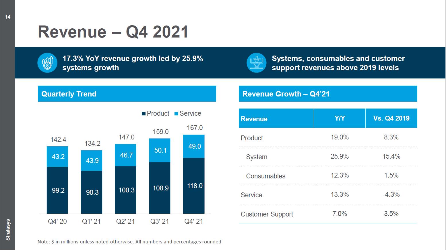 February 28, 2022 Polymer3D printingSolutions leader Stratasys Ltd. (Nasdaq: SSYS) today released fourth quarter and full year 2021 financial results. In the fourth quarter of 2021, Stratasys generated net income of $167 million, an increase of 17.3% from $142.4 million in 2020. Full-year 2021 revenue was $607 million, an increase of 16.7% from $520 million in 2020.