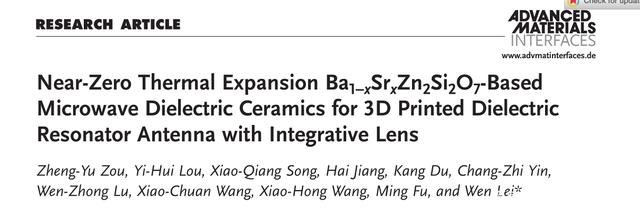 It is reported that the team of Professor Lu Wenzhong from the School of Optics and Electronic Information of Huazhong University of Science and Technology and the Key Laboratory of Electronic Information Functional Materials of the Ministry of Education used the CeraBuilder100 ceramic laser of Intale Laser3D printingThe machine-printed near-zero thermal expansion Ba1-xSrxZn2Si2O7-based microwave dielectric ceramic resonator antenna and integrated lens have potential application prospects in satellite communications with stable temperature. This microwave dielectric material is also very good in high-frequency communications and 5G fields. Application prospects. The result was published in the famous foreign journal ADVANCED MATERIALS under the name “Near-Zero Thermal Expansion Ba1-xSrxZn2Si2O7-Based Microwave Dielectric Ceramics for 3D Printed Dielectric Resonator Antenna with Integrative Lens”