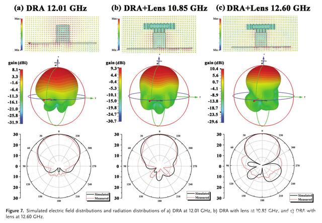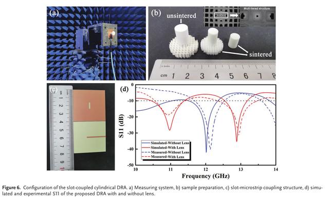 The dual adjustment of CTE and τf in a1-xSrxZn2Si2O7 microwave dielectric ceramics has potential application value in the field of microwave devices. In addition, Ba1-xSrxZn2Si2O7 ceramics have rare NCTE characteristics and are effective CTE regulators and sintering aids for Zn1.8SiO3.8 ceramics.Therefore, 0.95(0.9Zn1.8SiO3.8-0.1Ba0.4Sr0.6Zn2Si2O7)-0.05catio3 ceramics exhibit excellent microwave dielectric properties and ZCTE properties, making it a photocurable3D printingIt is an ideal candidate DRA material for the production of integrated lenses. The designed lens antenna gain has been enhanced, widening the working bandwidth (the average gain is 8.06 dBi at 10.45-11.39 GHz), and the average gain is 10.3 dBi at 12.27-13.45 GHz. Therefore, the new lens antenna designed by the author’s team has potential applications in temperature-stable satellite communications.