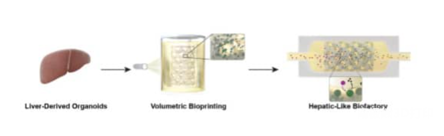 and applications in biomedical research, the research team has just published a new study on volumetric bioprinting of large-scale functional liver units.The study, titled “Bioprinting of Organoids and Optically Tuned Hydrogels to Build Liver-like Metabolic Biofactories,” was published in Materials Science and3D printingin Advanced Materials (Wiley), one of the leading scientific journals in the field. It is open access and is currently published electronically in advance, with additional figures and content available in Supplementary Information.