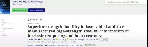 Here, Tan Chaolin of the Singapore Institute of Manufacturing Technology led a team to study the low-cost AISI 420 high-speed steel using powder injection laser-assisted additive manufacturing (LAAM), in which the internal tempering caused by the IHT effect promotes a large number of internal metal carbides. Formation, and the effect of post heat treatment on the structure and properties of LAMM materials. The increase in metal carbide content after heat treatment and nano-twinning results in a good strength-plasticity combination between a wide range of high-strength steels. The basic mechanism of strength-plasticity balance is clarified, and the ability of IHT to temper deposited materials in situ in AM is highlighted to improve the strength-plasticity combination. Relevant research results were published in Virtual and Physical Prototyping with the title “Superior strength-ductility in laser aided additive manufactured high-strength steel by combination of intrinsic tempering and heat treatment”.