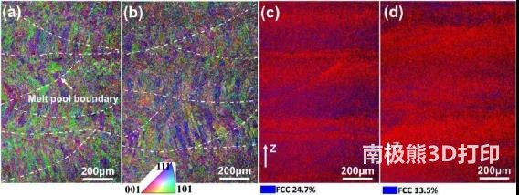 The laser powder bed of the part is fused with more retained austenite to form a horizontal build sample (volume 7%) than in a vertical sample (volume 3%) due to a larger area in the horizontal sample, resulting in a longer time Interval (~160s) melting layer compared to (~55s) vertical layer. Therefore, the horizontal sample allows more time to dissipate heat to the surroundings, resulting in a higher temperature gradient and cooling rate in laser processing. In addition, the unique thermal history in the laser AM process promotes the formation of a dislocation network in AM-treated 316L stainless steel, thereby reducing the strength-plasticity balance.