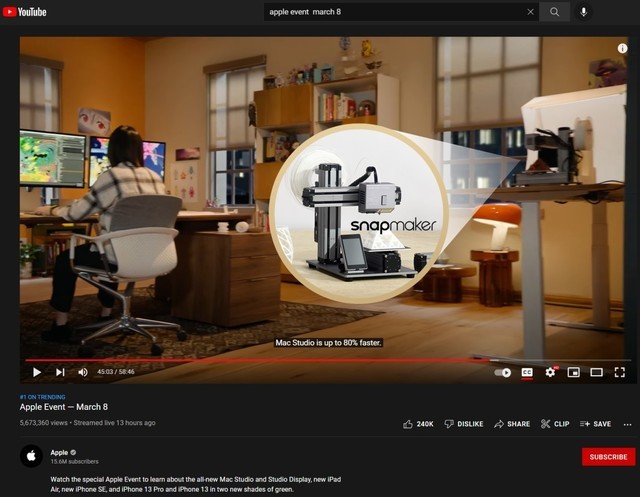 In March 2022, in Apple’s latest trailer for Mac Studio designed for creatives, the 3D printing studio and the