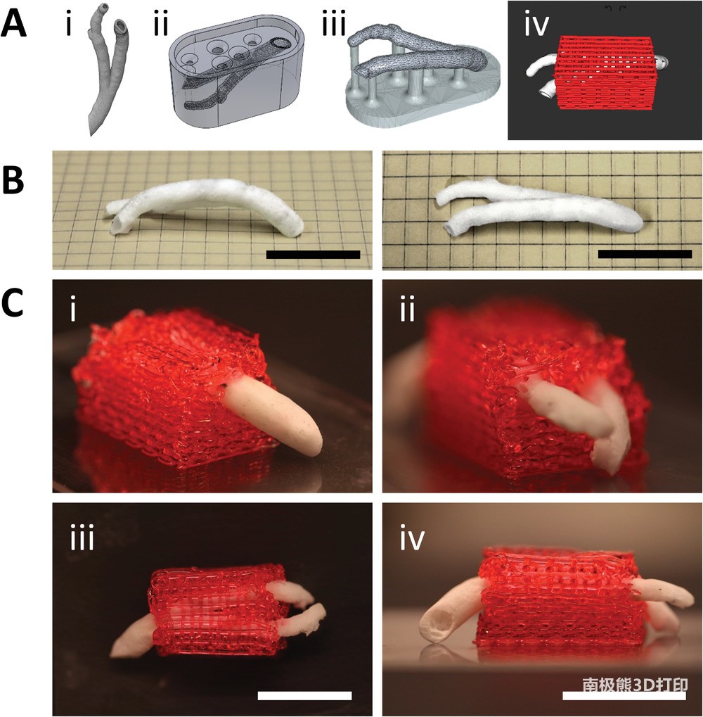 He first3D printingA polymer stent was created to mimic the size and shape of large blood vessels. The stent is printed in the form of a hollow tube with openings on the side to allow smaller blood vessels to attach.Unlike previous studies that used animal collagen to form scaffolds, Szklanny used the