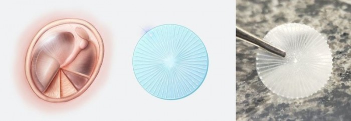 “Three months after implanting our optimized grafts into the ears of chinchillas, we ushered in the real’Eureka moment’,” said Aaron Remenschneider, a researcher on the project. “Hearing tests showed that sound conduction was completely restored, which has always been a major obstacle. Then, we used an endoscope to look at the ear canal for the first time. What we saw was just a little bit of our graft being replaced by new tissue- -A beautiful reconstructed tympanic membrane with a radial circular pattern.”