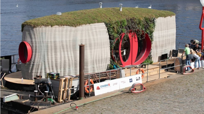 Not only is Prvok the first 3D printed house in the Czech Republic, it is also believed to be the first floating 3D printed house in the world, as it sits on a pontoon.