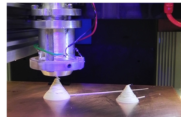 The working principle of this printer and the general3D printingThe machine is similar, but the difference is that the former can apply high-amplitude ultrasonic vibrations to the nozzle, thereby reducing friction on the nozzle wall, thereby pushing the high-viscosity material forward. This method also enables very precise flow control.