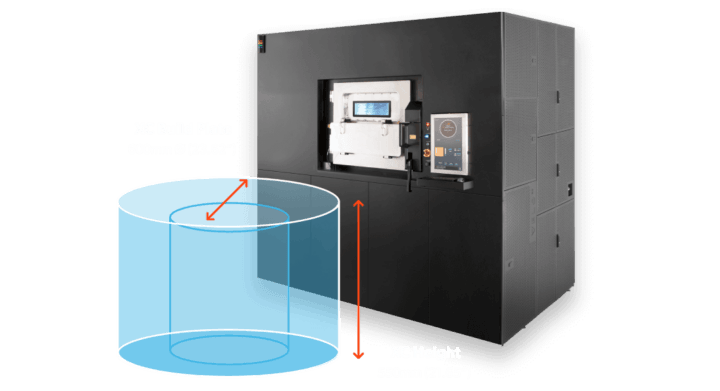 - Larger build volume: Using laser powder bed fusion (LPBF) technology, the build volume is 600 mm in diameter and 550 mm in height.