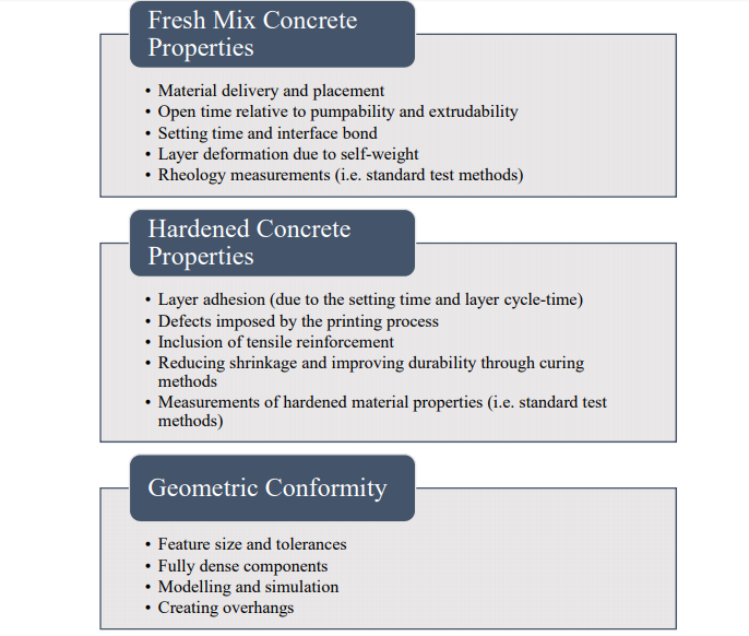“For example, material extrusion and binder jetting (also known as particle bed fusion) are two AM processes for 3DCP,” Jenkins said. “The difference in which process is used can change which parameters need to be considered during QA/QC. However, the material extrusion process has been the most commonly used AM method for 3DCP.”